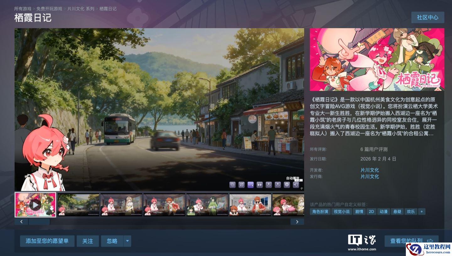 国产文字冒险游戏《栖霞日记》下月转为付费,现可限时“喜加一”免费加入 Steam 库