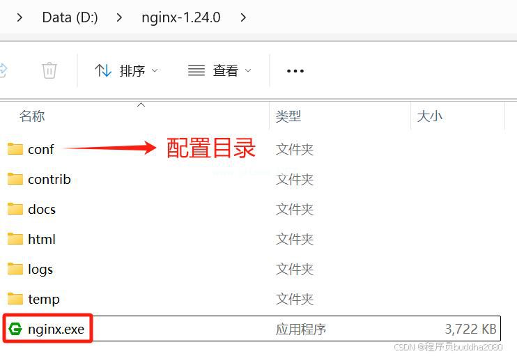 Nginx软件下载解压后,样子如下图: