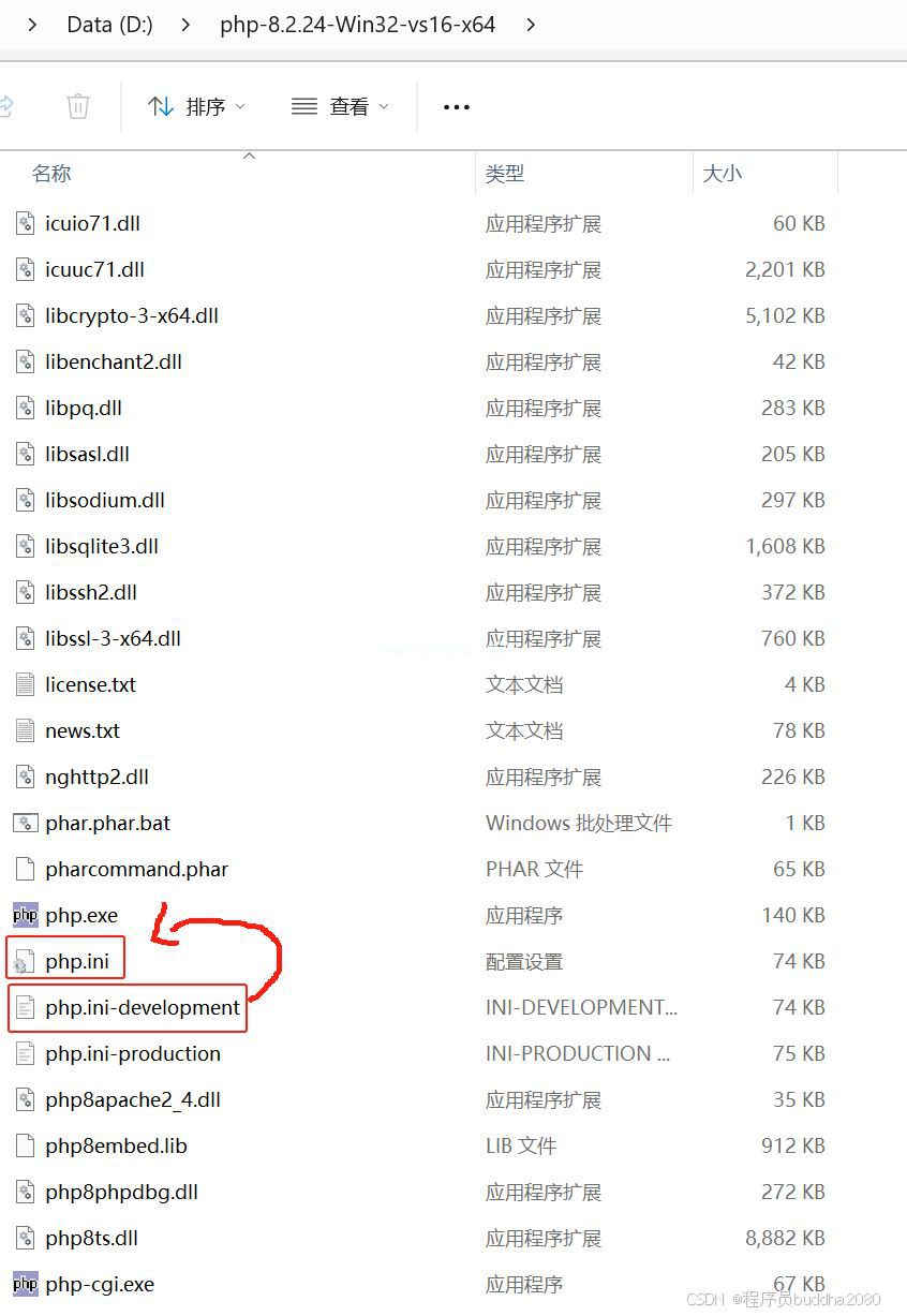 下载本地解压后,反手就复制一份php.ini-development改成文件名为php.ini