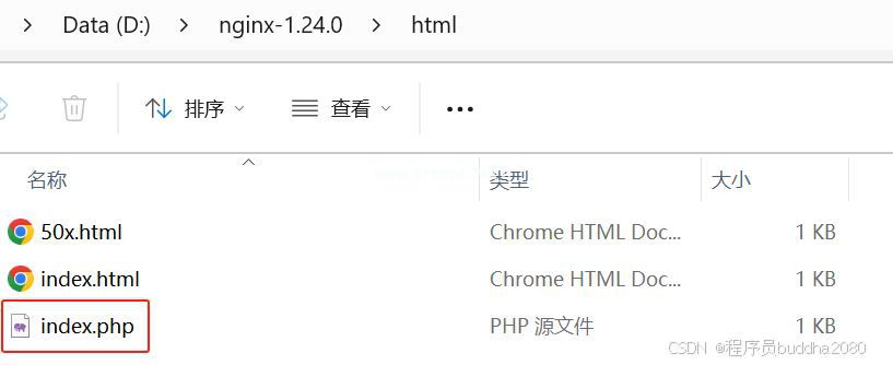 最后来到D:\nginx-1.24.0\html目录,创建了一个index.php文件