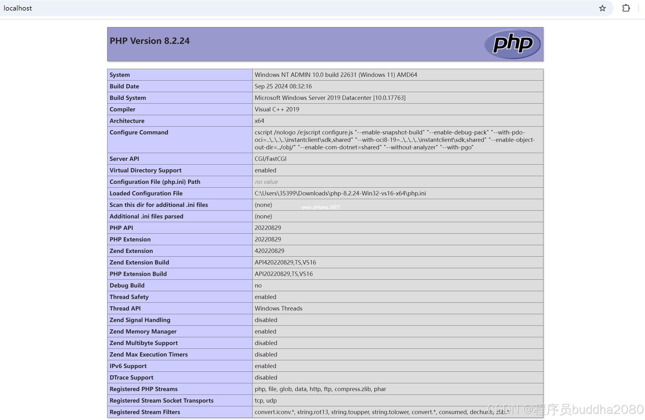 CMD来到D:\php-8.2.24-Win32-vs16-x64目录就是一顿ctrl+c/ctrl+v输出