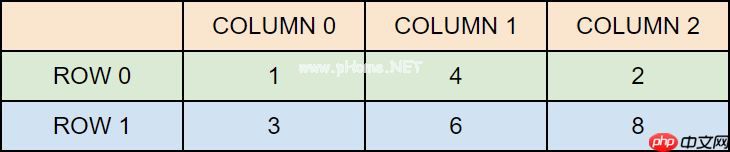 现在,numbers 是一个数组,其元素包含两个数组。第一个数组元素包含三个元素:1、4 和 2,而第二个数组元素包含 3、6 和 8。为了将其可视化,可以将数组视为带有行和列的表格: