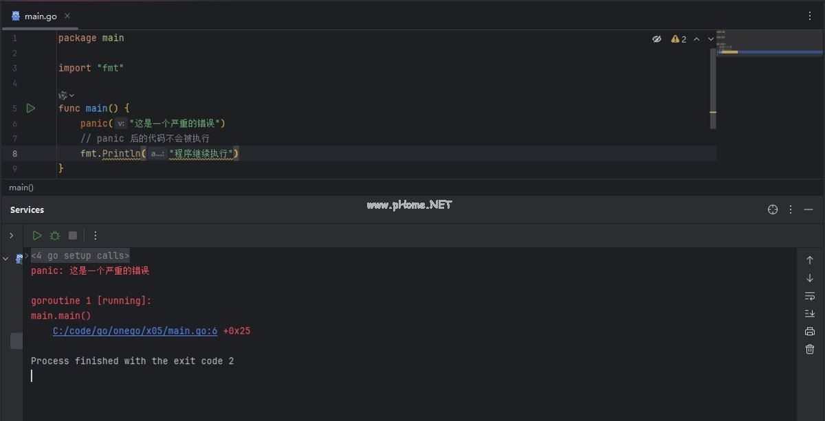 panic 是一个内置函数,用于触发一个panic。当程序遇到一个无法恢复的严重错误时(例如,关键依赖项初始化失败),可以调用 panic 来立即中止程序的正常执行。