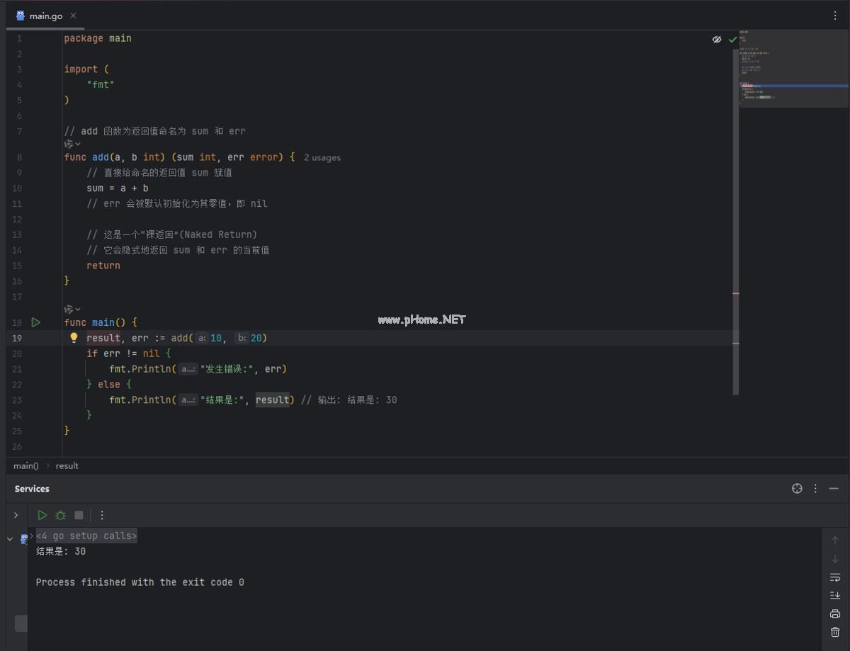 注意:虽然“裸返回”可以使代码更简洁,但在较长的函数中可能会降低可读性。因此,建议在简短、清晰的函数中使用。