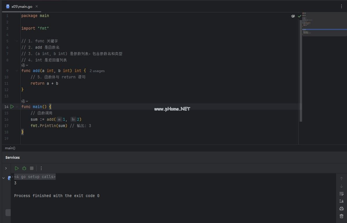 我们定义一个简单的加法函数 add。它接收两个 int 类型的参数并返回一个 int 类型的结果。