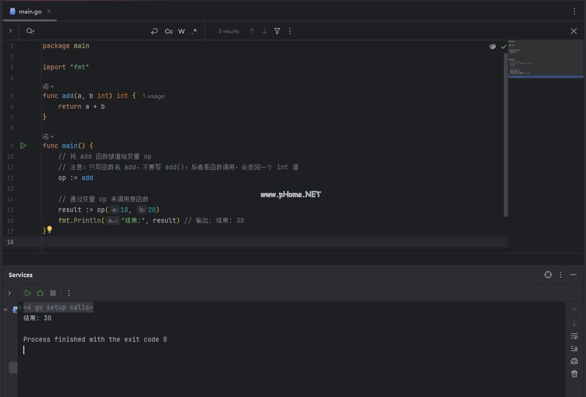 这表明 op 变量现在持有了 add 函数的引用,并可以像原始函数一样被调用。