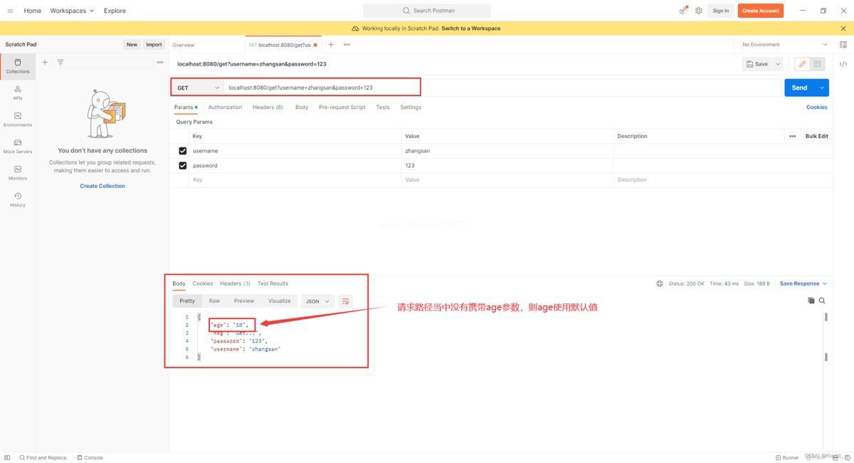 // 当请求路径当中没有带有 age 参数时,使用默认值18