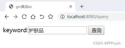 浏览器输入:http://localhost:8080/query进入查询页面输入护肤品进行查询:
