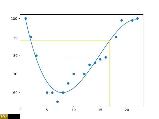 Python 有一些方法可以找到数据点之间的关系并画出多项式回归线。我们将向您展示如何使用这些方法而不是通过数学公式。
