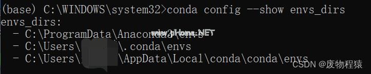 conda config --show envs_dirs发现没有那个目录就添加