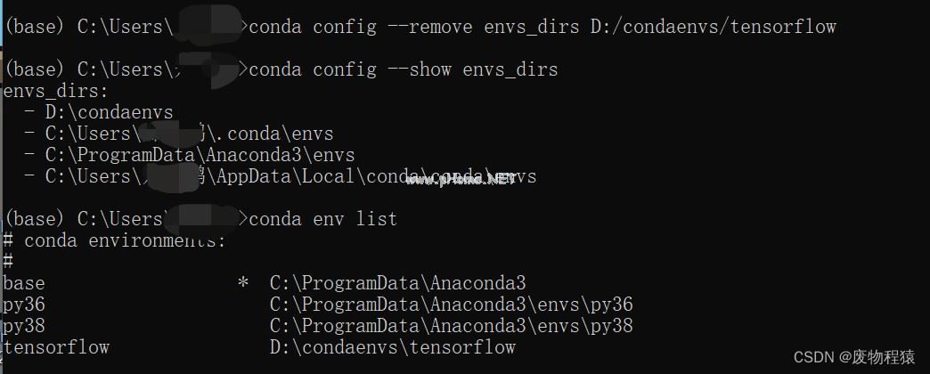 conda config --append envs_dirs 环境所在目录(不要加环境名!!!)