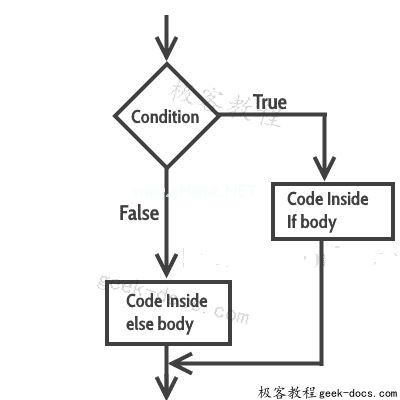 if(condition) { // Statements inside body of if}else { //Statements inside body of else}if-else语句的流程图
