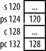 ps指针增加了2,因为short的长度是2字节。pc指针增加了1,因为它的数据类型长1字节。这些地址可能没有包含有用的信息。