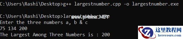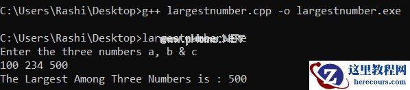 // C++ program to find largest// among three numbers using // logical operator#include<bits/stdc++.h>using namespace std; // Driver codeint main(){ int a, b, c; cout << "Enter the three numbers a, b & c" << endl; cin >> a >> b >> c; if(a >= b && a >= c) { cout << "The Largest Among Three Numbers is : " << a << endl; } else if(b >= a && b >= c) { cout << "The Largest Among Three Numbers is : " << b << endl; } else { cout << "The Largest Among Three Numbers is : " << c << endl; } return 0;}输出: