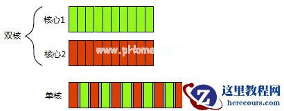 图 1.1 并发的两种方式:双核机器的真正并行 Vs. 单核机器的任务切换