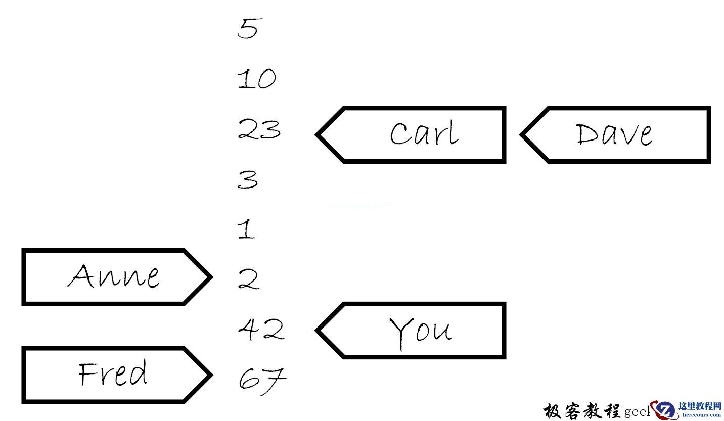 试想当他的笔记本上开始有5,10,23,3,1,2这几个数。如果你问他索要一个值,你可能获取这几个数中的任意一个。如果他给你10,那么下次再问他要值的时候可能会再给你10,或者10后面的数,但绝对不会是5。如果那你问他要了五次,他就可能回答“10,10,1,2,2”。如果你让他写下42,他将会把这个值添加在列表的最后。如果你再问他要值,他可能会告诉你“42”,直到有其他值写在了后面并且他认为他愿意将那个数告诉你。