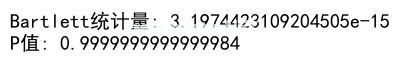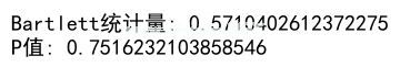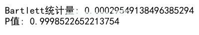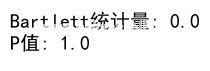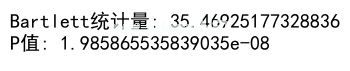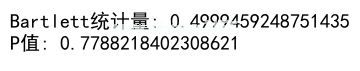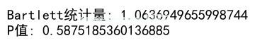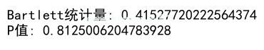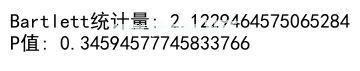 运行以上代码,可以得到Bartlett检验的统计量和P值。