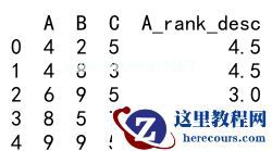 运行以上代码,我们可以得到一个新的DataFrame,其中包含了降序排名的’A’列数据