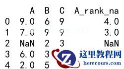 运行以上代码,我们可以得到一个新的DataFrame,其中包含了处理缺失值的’A’列数据的排名