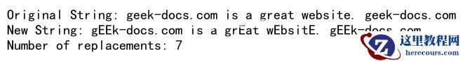 在上面的示例中,我们统计了字符串s中子串geek-docs.com出现的次数,并将其替换为大写字母GEEK-DOCS,结果为2次替换。