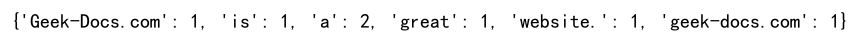 # 统计字符串中单词出现的次数s = "Geek-Docs.com is a great website. geek-docs.com"words = s.split()word_counts = {word: s.count(word) for word in words}print(word_counts)Output: