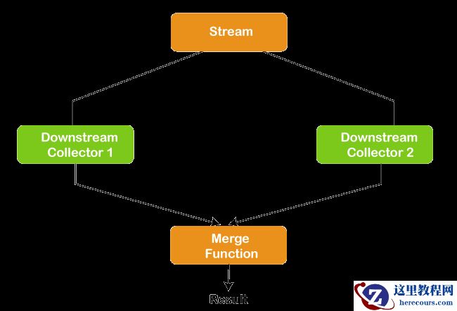 使用Java 12引入的 “Teeing Collector”,我们可以更快速地完成它。我们可以定义两个下游采集器(将两个下游采集器的输出合并的采集器)和一个合并函数。