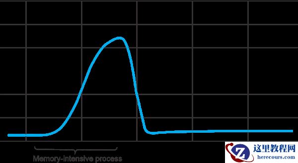 假设我们有一个程序,除了每天运行一次内存密集型的批处理程序外,其他时间基本不活动。结果,在批处理操作完成后,不需要垃圾收集周期,我们为包含一天中大部分时间未使用的对象的RAM付费(红色高亮区域)。