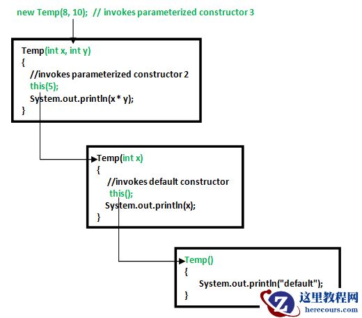 - this() 表达式应该始终是构造函数的第一行。至少应该有一个没有this()关键字的构造函数(上例中的构造函数3)。构造函数链可以以任何顺序实现。