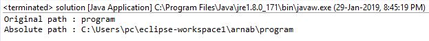 Original Path: program.txtAbsolute Path: C:\Users\pc\eclipse-workspace1\arnab\program.txt