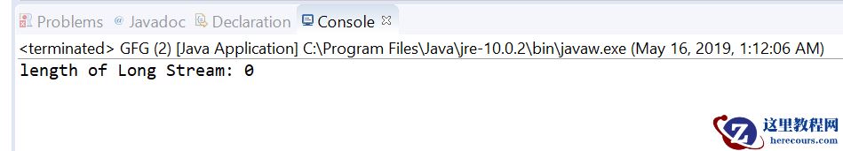// Java program to demonstrate// OptionalLong.stream() method import java.util.OptionalLong;import java.util.stream.LongStream; public class GFG { public static void main(String[] args) { // create a empty OptionalLong OptionalLong opLong = OptionalLong.empty(); // get value as stream LongStream out = opLong.stream(); // print value System.out.print("length of Long Stream: " + out.count()); }}输出:
