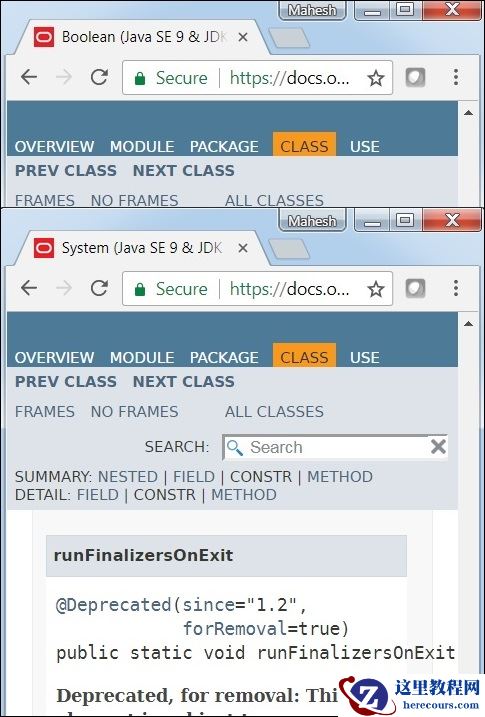 下面是Java 9中System类javadoc的示例,说明了@Deprecated注解上forRemoval属性的使用方法。