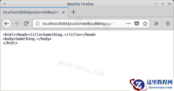 在下面的示例中,我们读取带有InputStream的网页,并向客户端显示该页面的 HTML 代码。 网页的名称是从 HTML 表单的input标签发送的。