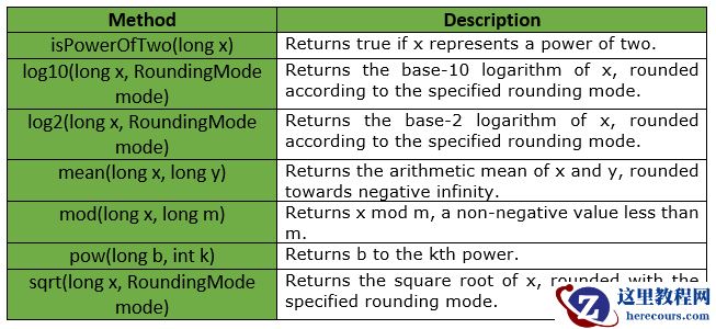 下表显示了Guava的LongMath类提供的一些方法。