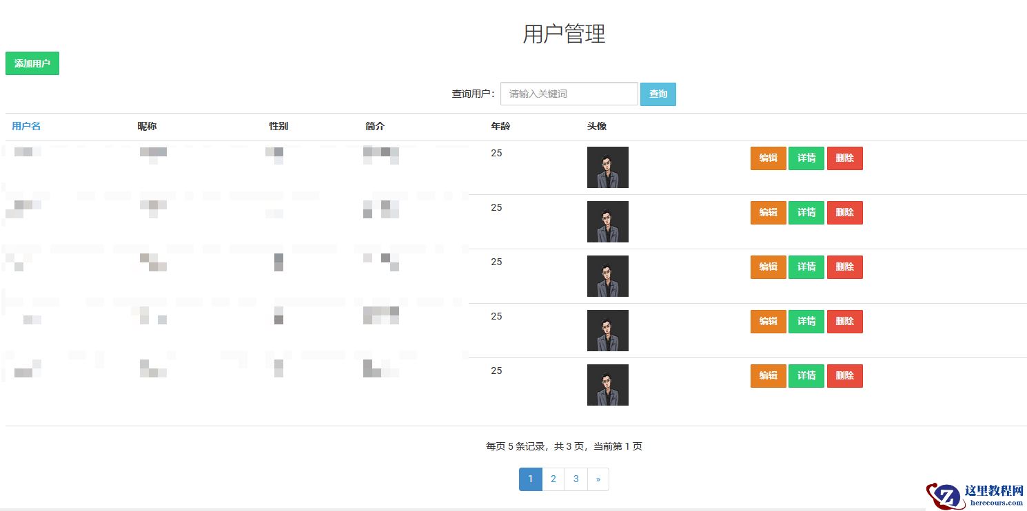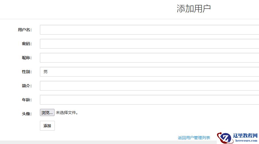 2,接下来展示用户添加以及上传头像代码、添加用户界面