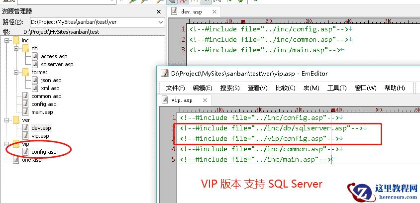 举个简单的应用场景,开发一个小的API系统,支持 XML、JSON输出。区别是 基础版(dev/dev.asp)只支持 Access,VIP版本(dev/vip.asp)支持 Access + SQL Server。这样VIP版本就需要在现在的基础上 增加 sqlserver的支持,增加额外的 配置项。开发过程只需要 按正常开发即可。