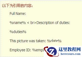 这就是所有的代码了,很简单,不是吗?它所作的只是打开模板文件,按顺序读入每一行,然后用冲数据库中读入的实际的字段值来代替模版中那些%img%,%name%标记。而且,它还把在“Duties”字段内大段文本中的回车解释成HTML的回车 ,这样就不至于打乱整个的排版格式了。怎么样?轻松搞定吧。模板在某些应用上真的是可以发挥奇效,省时省力。
