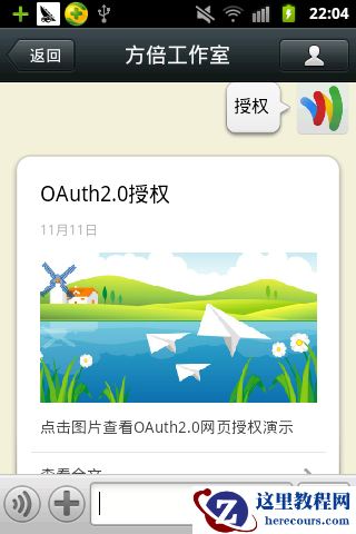 关注方倍工作室(二维码见下图),回复“授权”,返回图文消息,点击图片