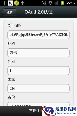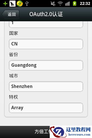 至此,在不输入我的账号及密码的情况下,微信公众账号近宝获得了我的个人信息,这些信息包括昵称、性别、国家、省份、城市、个人头像以及特权列表。