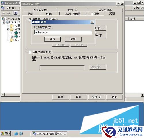点击文档。把启用默认内容文档的都删除,从新添加index.asp。之后其他就确定。完成。