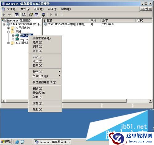点击默认网站的属性