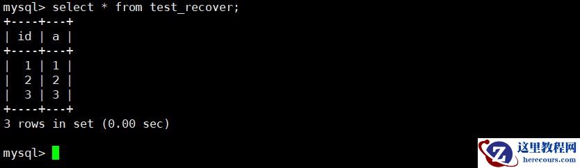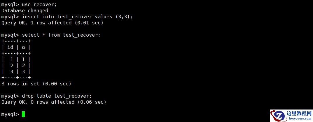 -- 1. 插入全备后的增量数据 use recover; insert into test_recover values (3,3); -- 2. 验证数据(此时表中应有3条数据) select * from test_recover; -- 3. 模拟误删表 drop table test_recover;