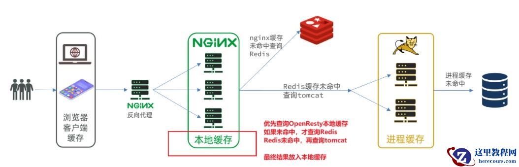 在多级缓存架构中,Nginx内部需要编写本地缓存查询、Redis查询、Tomcat查询的业务逻辑,因此这样的nginx服务不再是一个反向代理服务器,而是一个编写业务的Web服务器了。