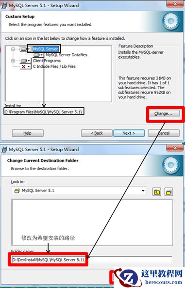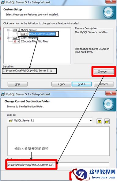 全部安装在本地硬盘上”。点选“Change...”,手动指定安装目录(分为安装目录和数据库目录)