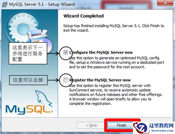 前面的勾打上,点“Finish”结束软件的安装并启动mysql配置向导。