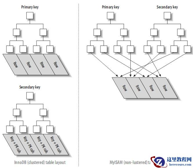 3.1.1、InnoDB和MyISAM的数据布局的比较