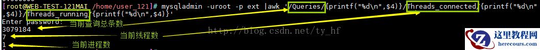 1.使用awk查询当前mysql查询条数: