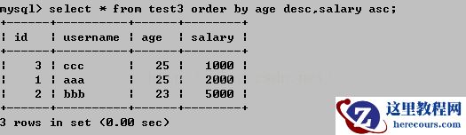 也可以在order by后指定多个字段名和排序方式进行多级排序:
