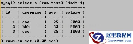这里还有一种情况,就是指定查询结果的数量可能大于表中的实际数量,这个时候返回结果会返回表中所有符合条件的数据,例如我的表中有3条数据,如果指定数量为4,实际上查询出的还是3条: