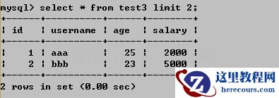 上图中的0,代表查询的开始位置,也可以理解为跳过的数量;上图中的2代表需要查询出的数量。这个表中有3条数据,因为限制了条数为2,因此实际结果只是两条。另外,这里的初始位置是0,实际上可以不写,默认就是0: