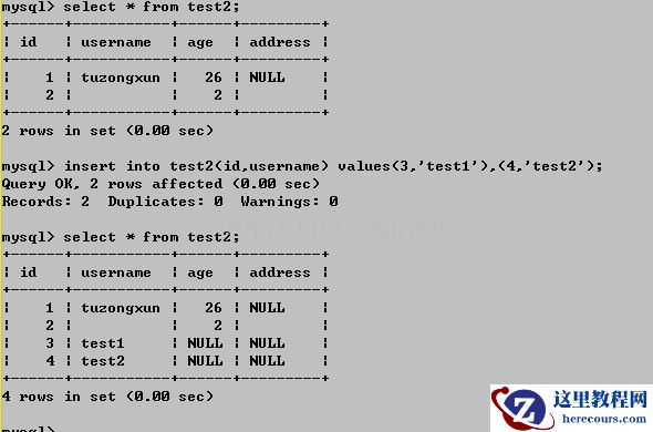 2、插入多条数据:insert into tablename(字段1,字段2) values(字段1的值,字段2的值),(字段1的值,字段2的值),(字段1的值,字段2的值)...;